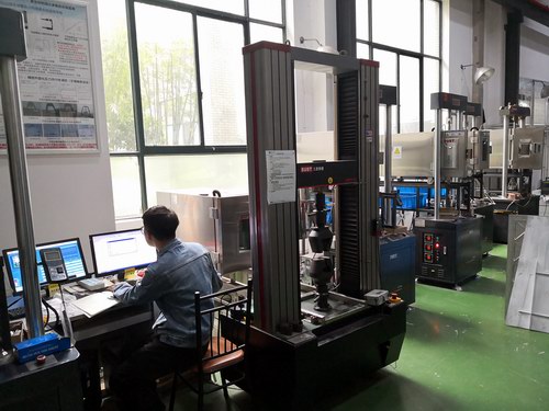 萬能試驗機,將用于在相關材料及構件的檢測分析。圖為設備現場。